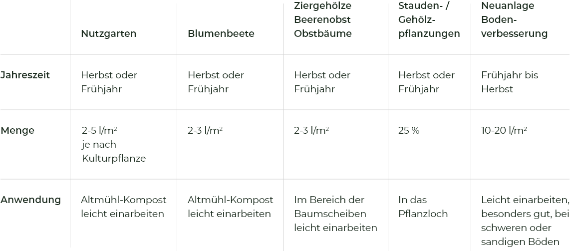 - Ausgleich des Humusabbaus und Erhöhung des Humusgehalts im Boden.